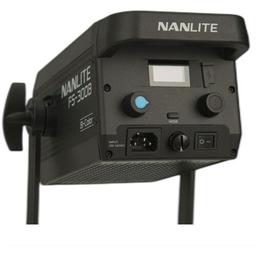 The NANLITE FS 300B includes multiple built-in lighting effects such as fire, TV flicker, paparazzi, and storm. These effects streamline production workflows by eliminating the need for additional equipment. Its rear control panel is intuitive, allowing quick adjustments during fast-paced shoots.